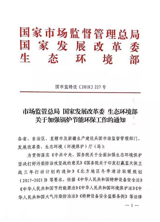 為貫徹落實(shí)《中共中央、國(guó)務(wù)院關(guān)于全面加強(qiáng)生態(tài)環(huán)境保護(hù)堅(jiān)決打好污染防治攻堅(jiān)戰(zhàn)的意見(jiàn)》《國(guó)務(wù)院關(guān)于印發(fā)打贏藍(lán)天保衛(wèi)戰(zhàn)三年行動(dòng)計(jì)劃的通知》《北方地區(qū)冬季清潔取暖規(guī)劃(2017-2021)》等要求,依據(jù)《中華人民共和國(guó)特種設(shè)備安全法》《中華人民共和國(guó)節(jié)約能源法》《中華人民共和國(guó)環(huán)境保護(hù)法》《中華人民共和國(guó)大氣污染防治法》《特種設(shè)備安全監(jiān)察條例》等法律法規(guī)的規(guī)定,現(xiàn)就加強(qiáng)鍋爐節(jié)能環(huán)保工作有關(guān)事項(xiàng)通知如下。